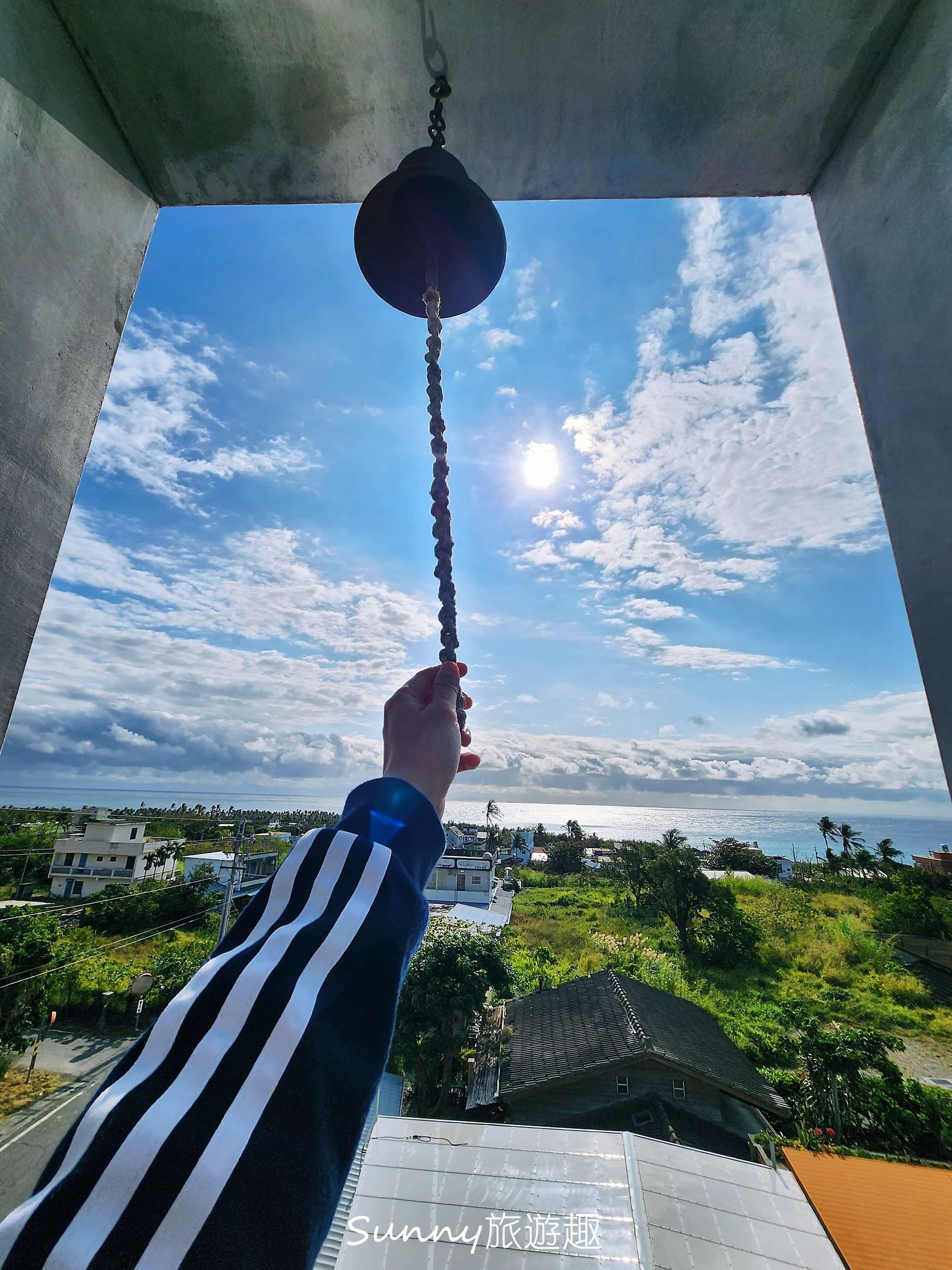 呵呵~這個框景,美得像幅畫,如果不趕時間真想坐在這裡發呆。聽說這方向也看的到日出喔! 起得來的朋友下次來別忘了上頂樓賞日出。