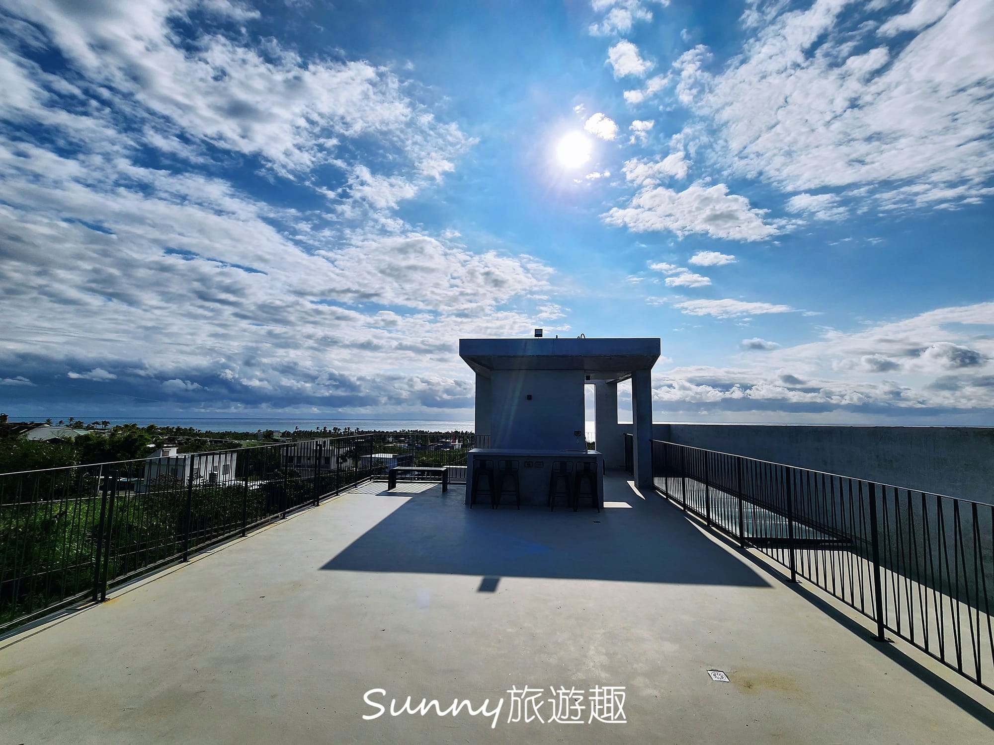 隔天早上起床我又上頂樓晃晃,哇~~天氣超棒,晴空萬里、海天一色,一早起來就可以看到這樣的美景,這樣開啟美好的一天真是享受。