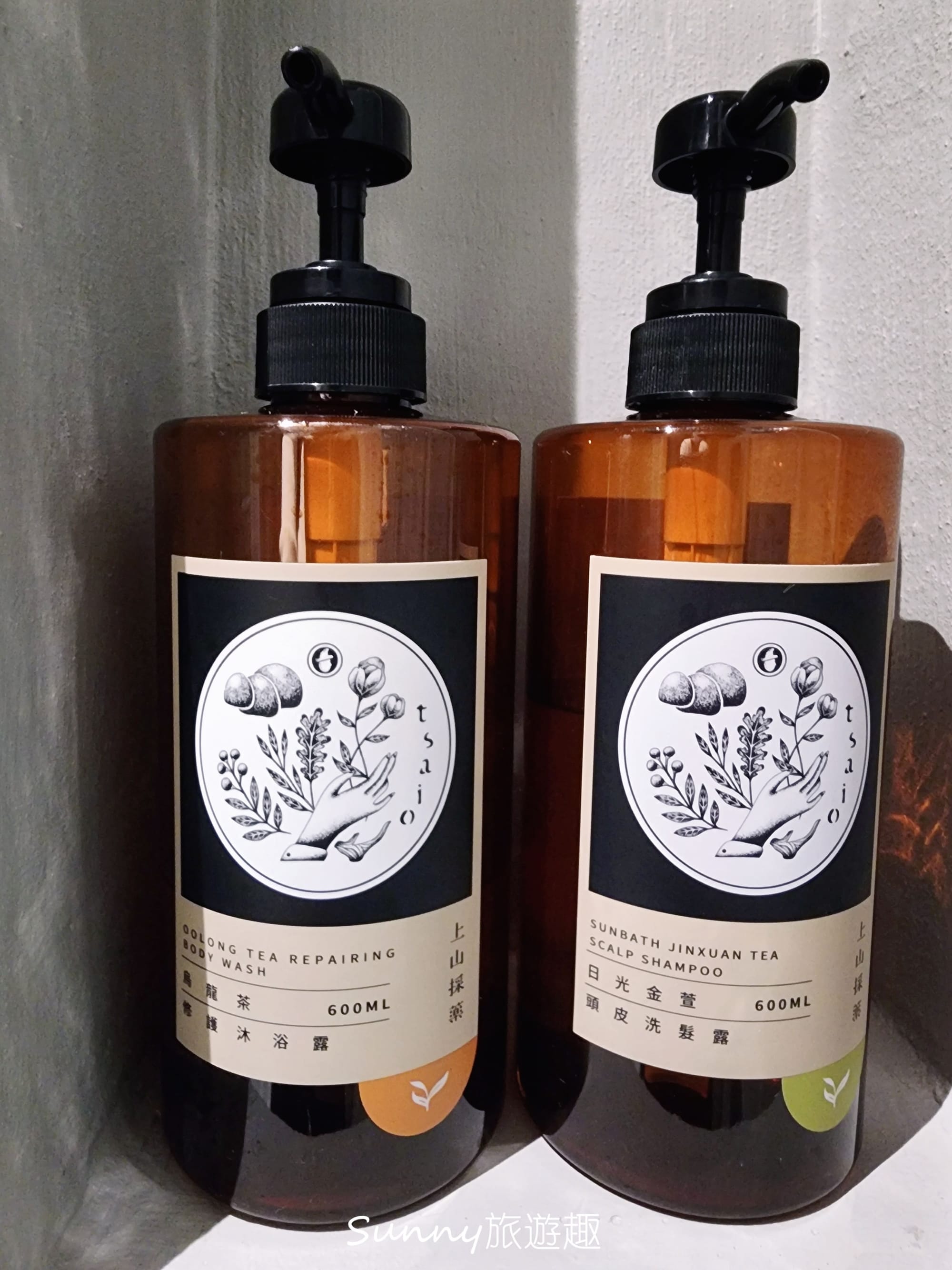 民宿提供的沐浴備品是上山採藥的茶系列,烏龍茶沐浴乳 和 金萱洗髮乳。主打使用在地茶萃取,洗髮精是無矽靈配方,沐浴乳則是無皂鹼設計,淡淡的茶香味道我很喜歡,洗起來皮膚跟髮質都感覺很滋潤、不乾澀。可以感受到民宿老闆在備品選擇上並不是隨便應付,而是希望提供給旅人偏健康、天然、用起來安心的選項。