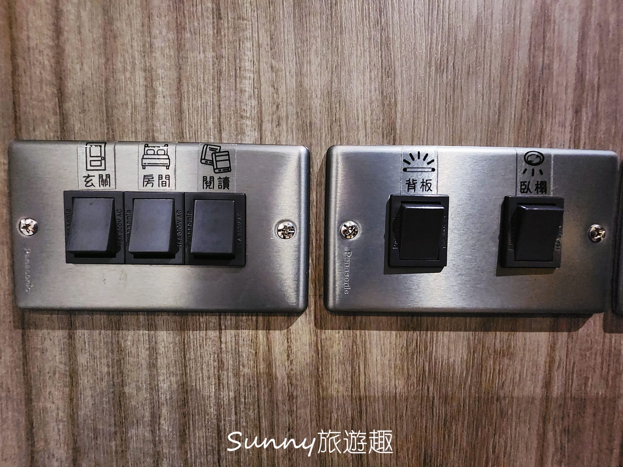 房間燈光控制開關還貼上了圖示說明,一目了然,不用在那邊猜。