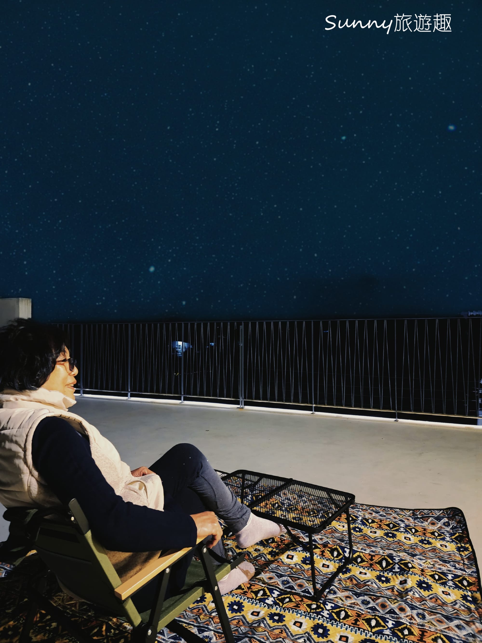 老闆說天氣好的話到頂樓可以看到漂亮的星空,為了讓旅客能舒適的享受台東的美麗的夜景,還準備了野餐墊、摺疊桌椅,真的是很周到呢!