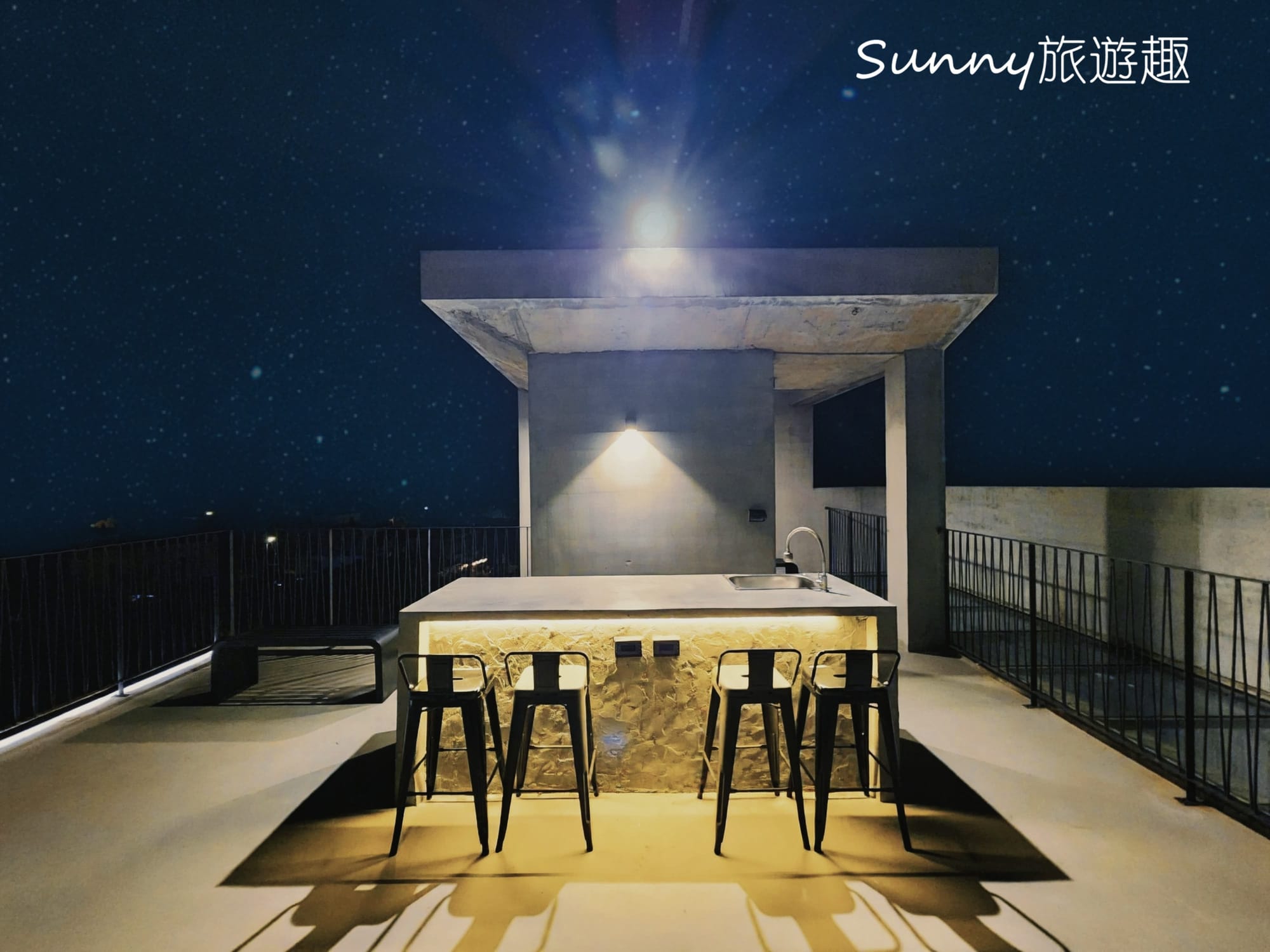 我原本以為頂樓是空空如也的一片,一上去發現有個戶外吧檯,可以坐在這裡跟朋友吃消夜喝點東西、聊聊天,感覺很愜意呢。