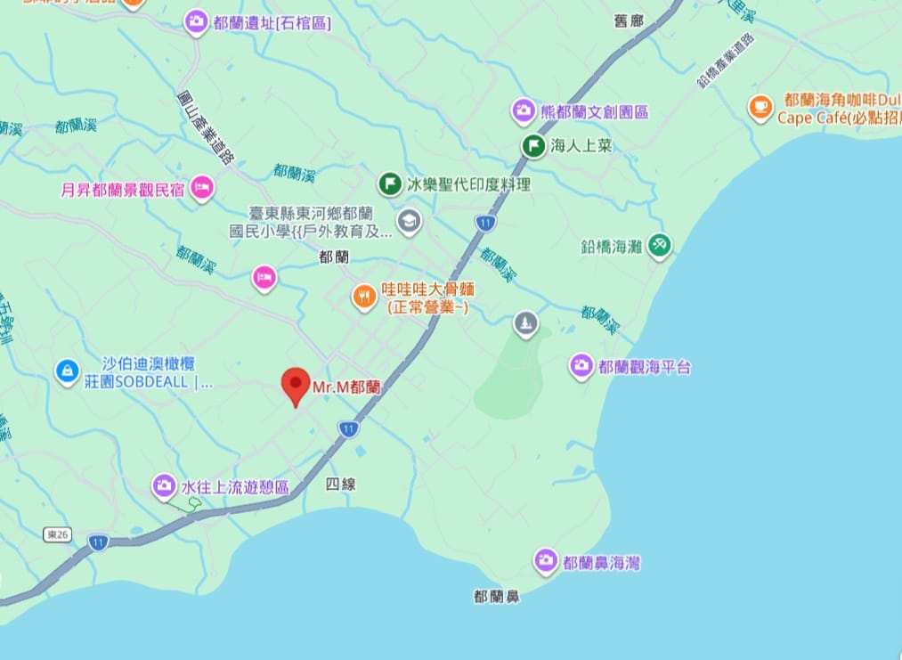 如果是自己開車前來,其實是最輕鬆、也最推薦的方式。從台東市區出發,沿著台11線往成功方向走,沿途就是海景路線,開起來不太有壓力,也很有度假的感覺。導航直接設定民宿地址即可,整體路況單純,對第一次來都蘭的人來說也不難找。