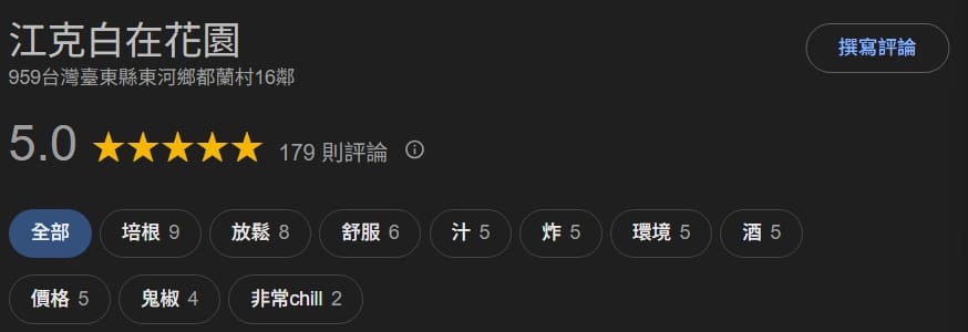 民宿隔壁燈火通明,經民宿老闆介紹,原來是一間評價很好知名的美式餐廳(江克白在花園),喜歡美式料理的朋友可以就近在旁邊餐廳用餐。