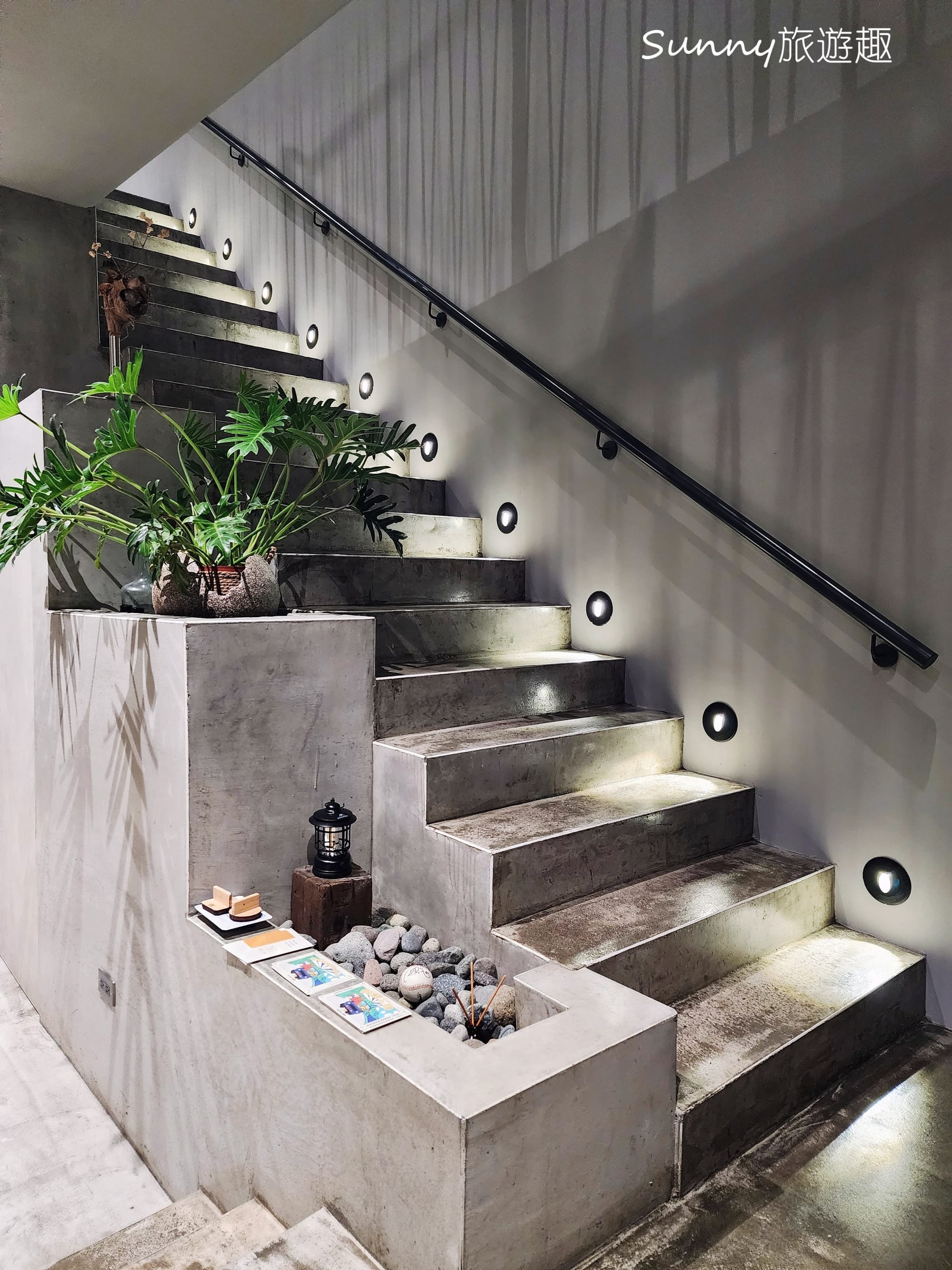 燈光映照在牆面與階梯上,讓原本簡單的樓梯多了層次感,也讓上樓這段過程本身,變成一個舒服、不急促的過渡。走到二樓前,心情也已經自然轉換,準備進入接下來的住宿空間。
