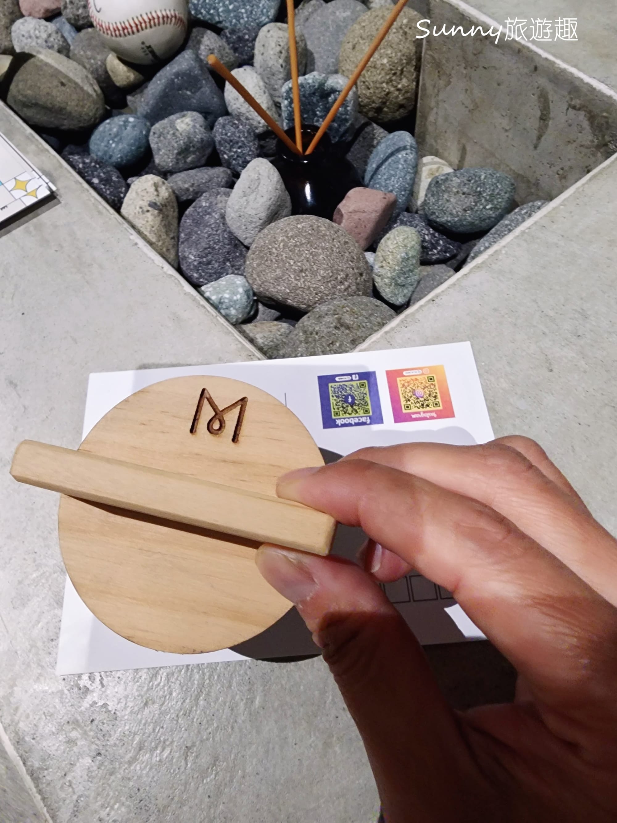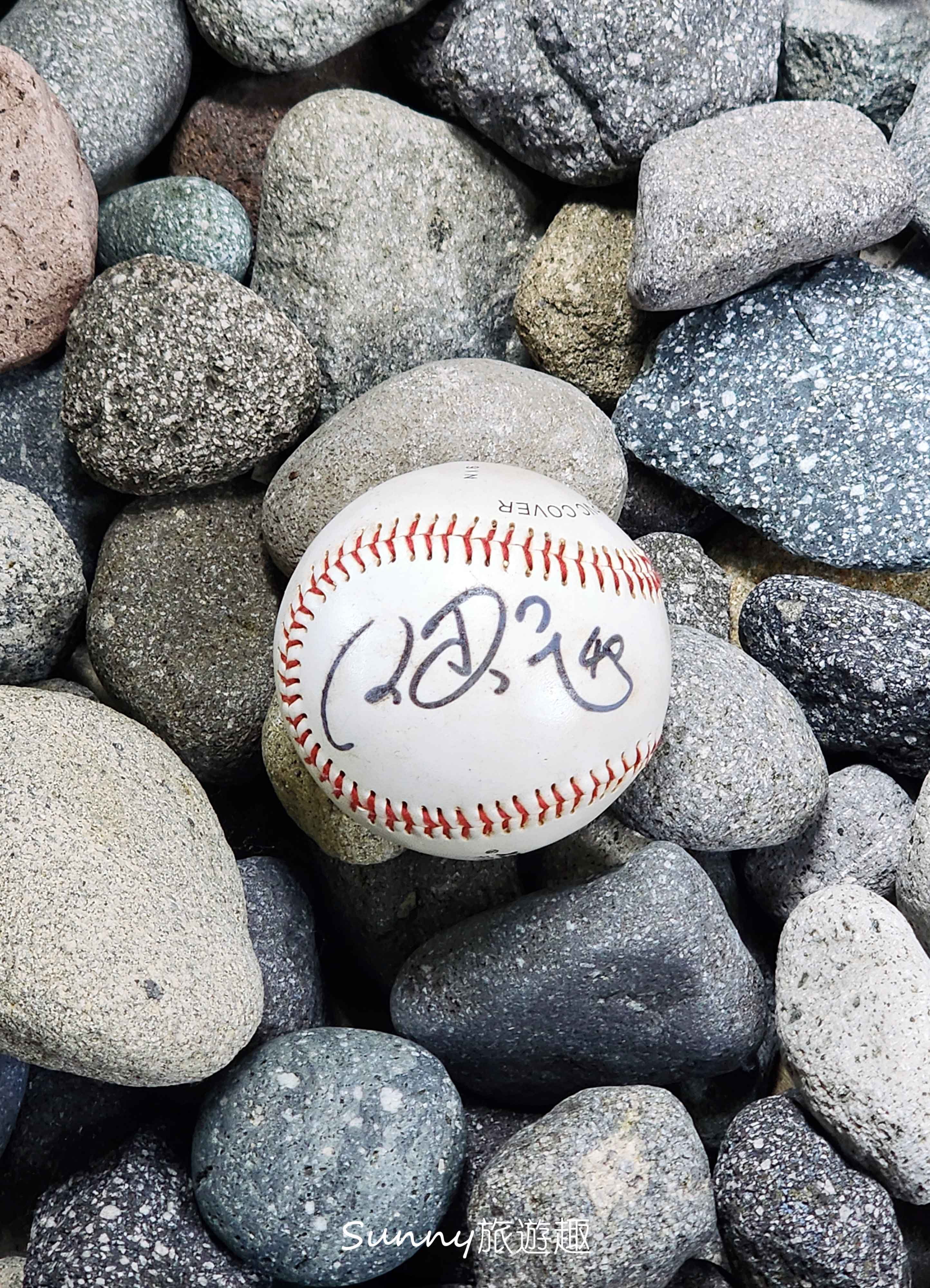 像是在樓梯旁不起眼的小角落,石頭造景之間,居然低調地放著一顆簽名球。如果不是特別停下來看,真的很容易錯過,仔細一看沒想到竟然是王建民的簽名球,就這樣靜靜地藏在空間裡。