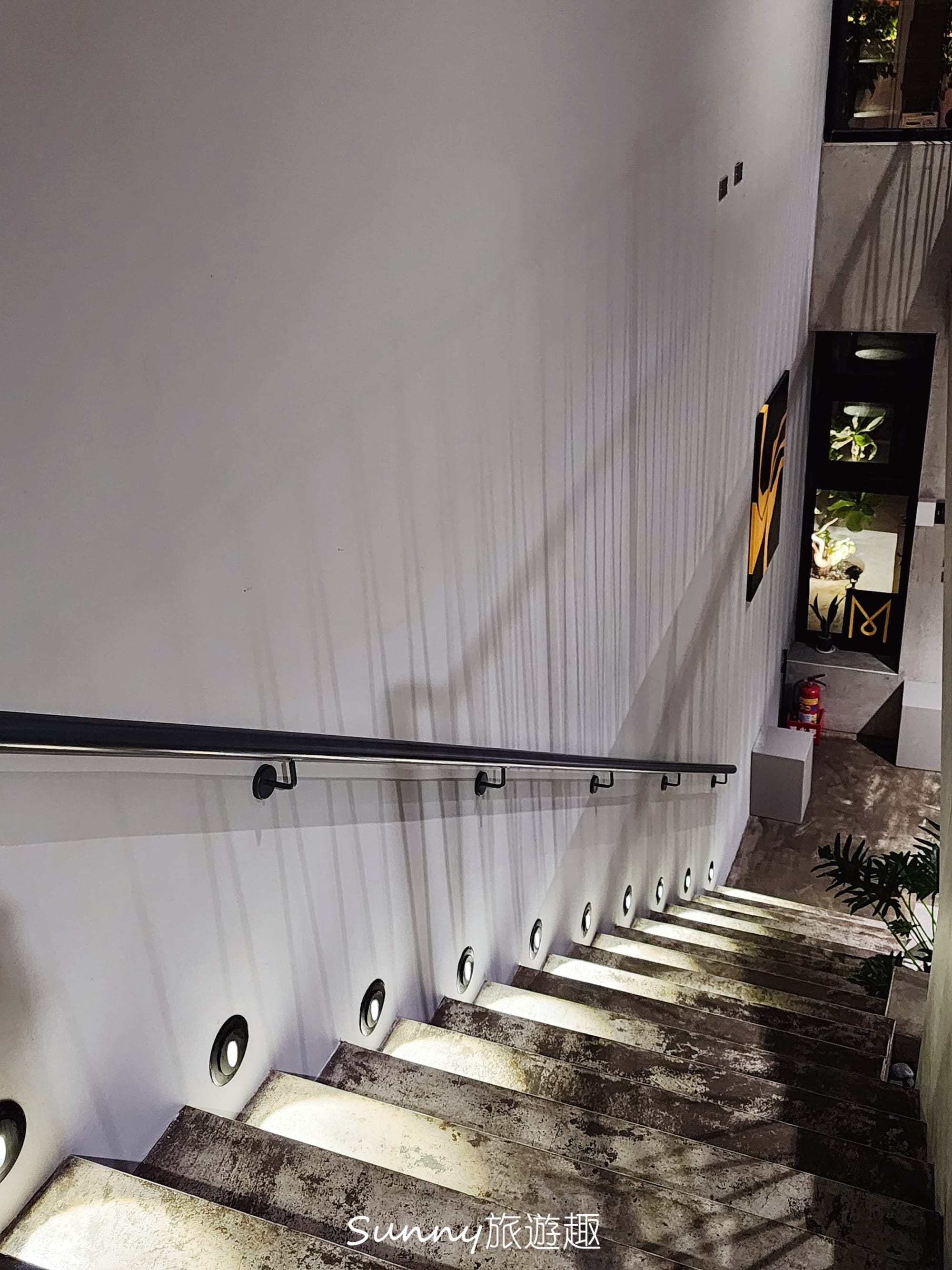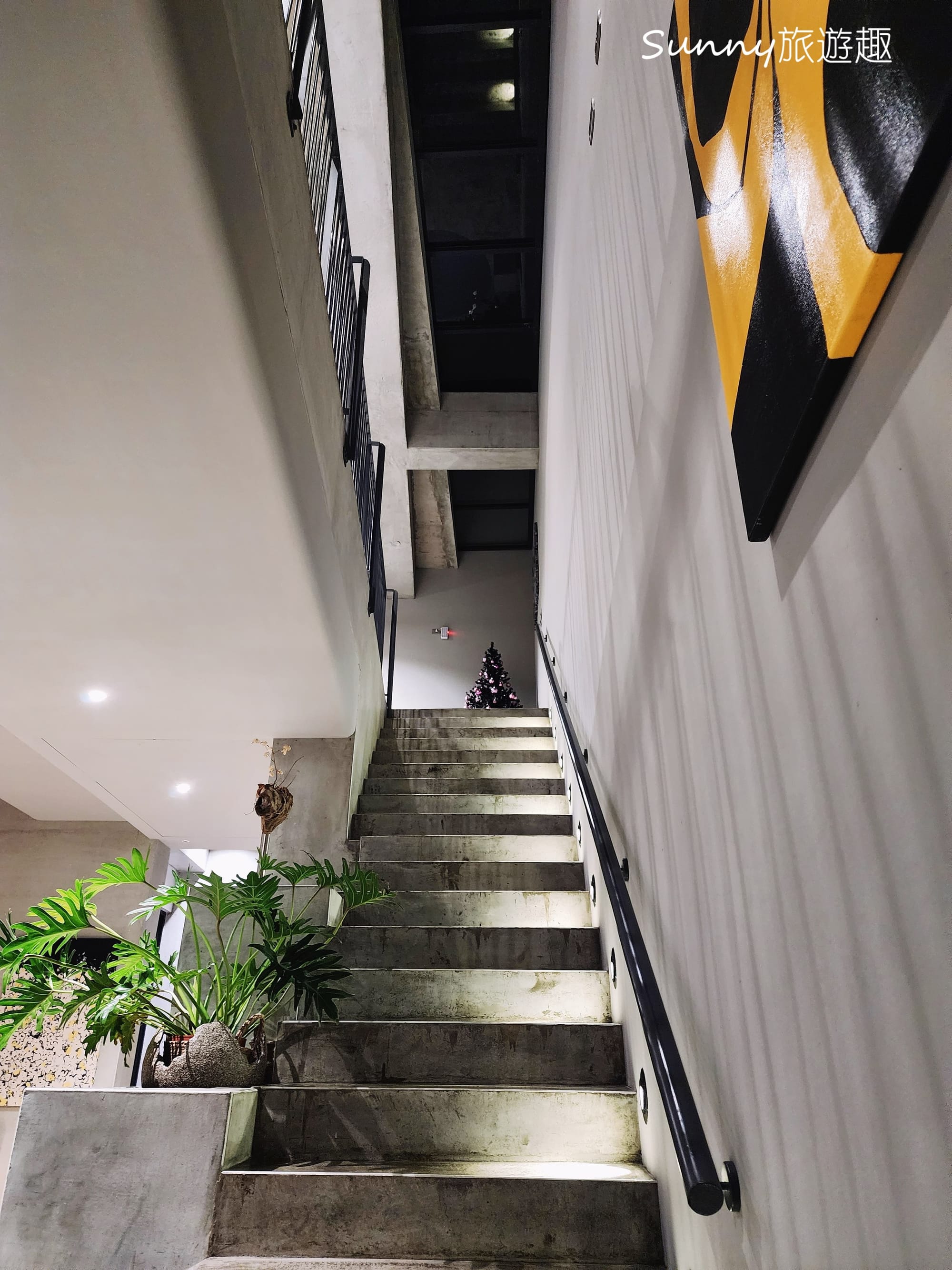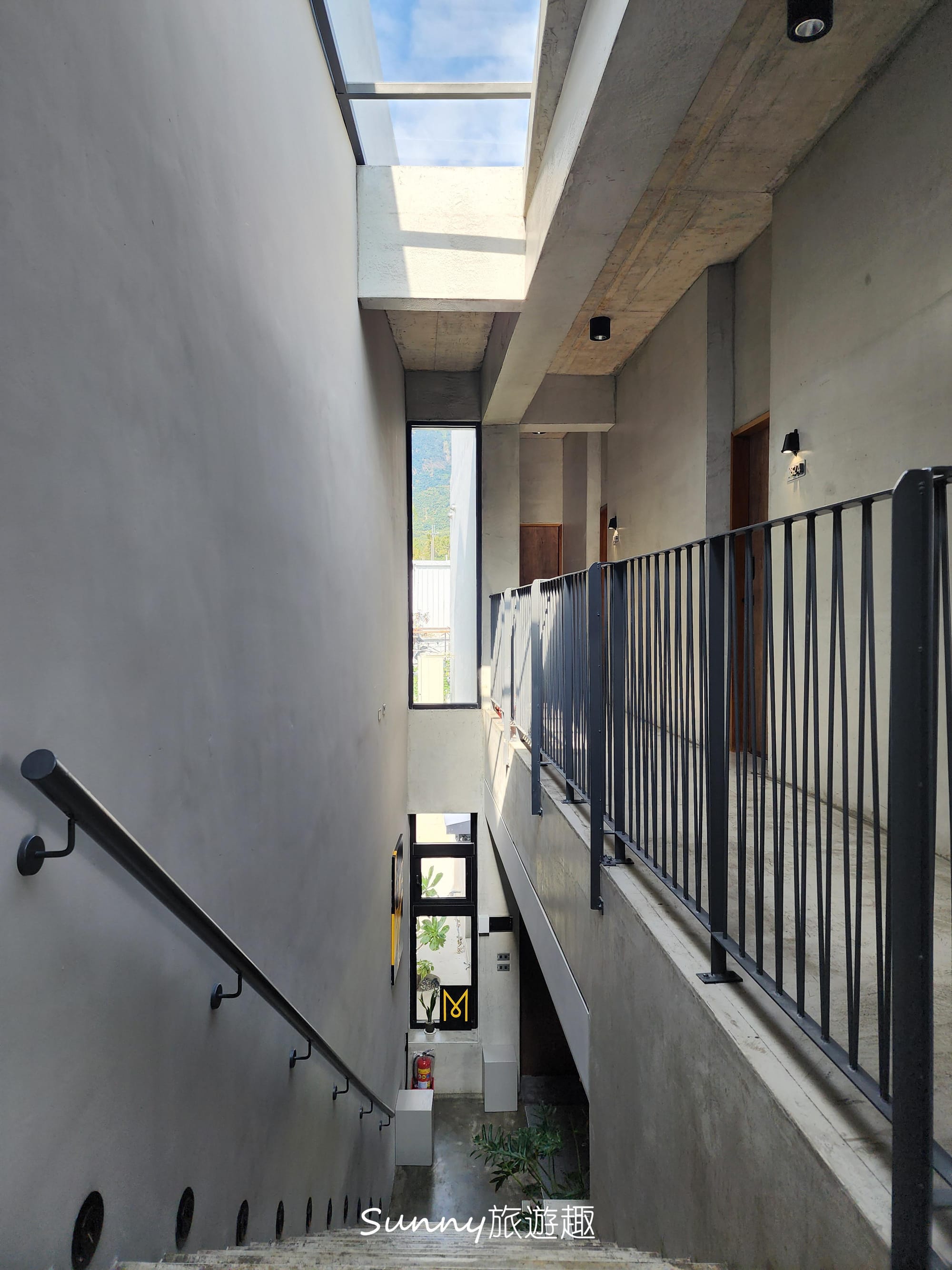 站在這個位置往下望,會覺得每一層空間彼此相連,也和外部環境保持著連結,而不是被關在室內的動線之中。這樣的設計,讓走樓梯不只是移動,而是一段能感受到空間呼吸感的過程。