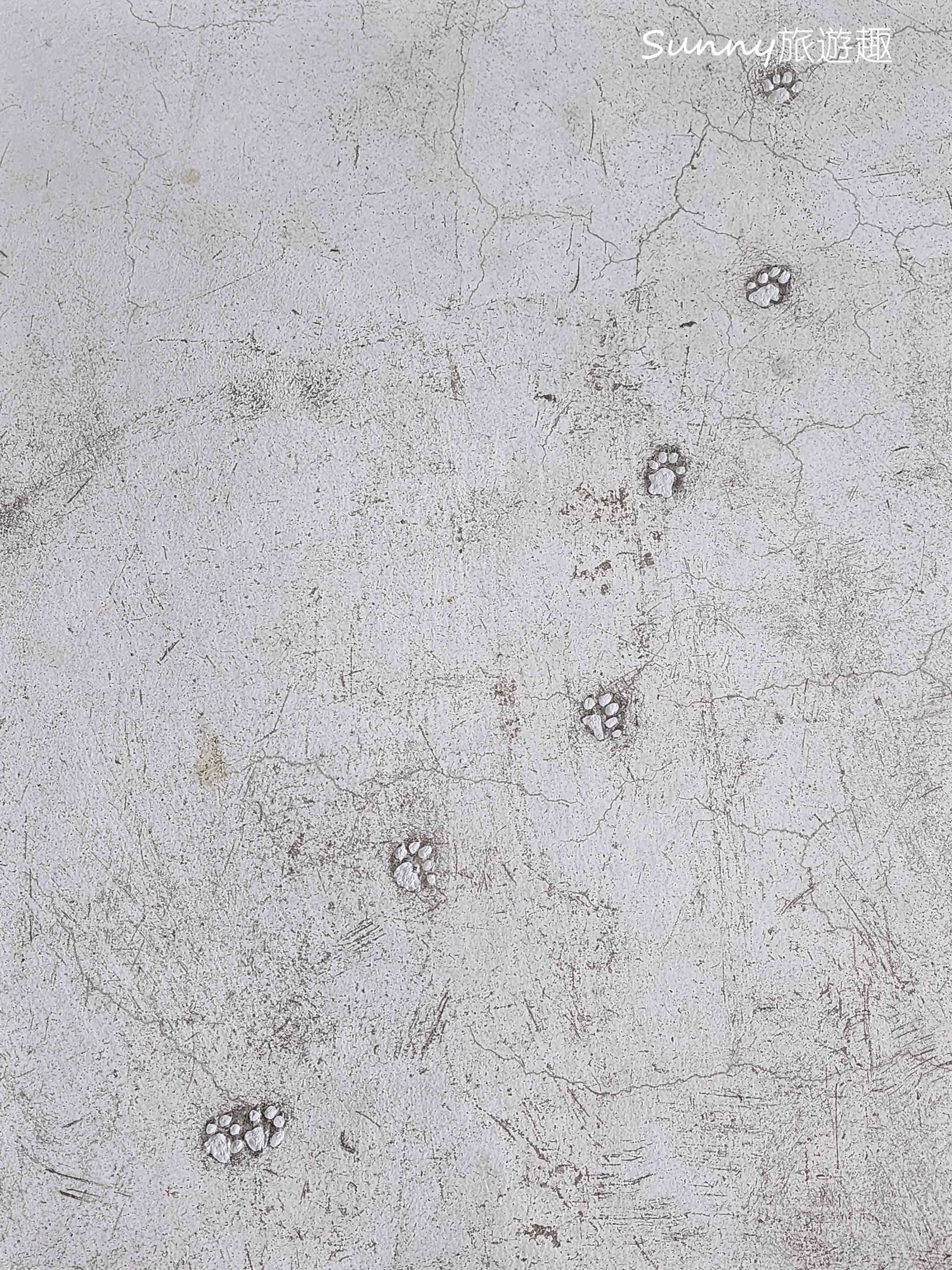 我也注意到地板上留下了幾個貓咪的腳印。後來老闆跟我分享,原來是在建造民宿的時候,有流浪貓跑進來「參觀」,不小心在地板上留下了足跡。老闆想了想,乾脆把這些腳印保留下來,當作一個小小的紀念,也讓空間多了一點故事感。