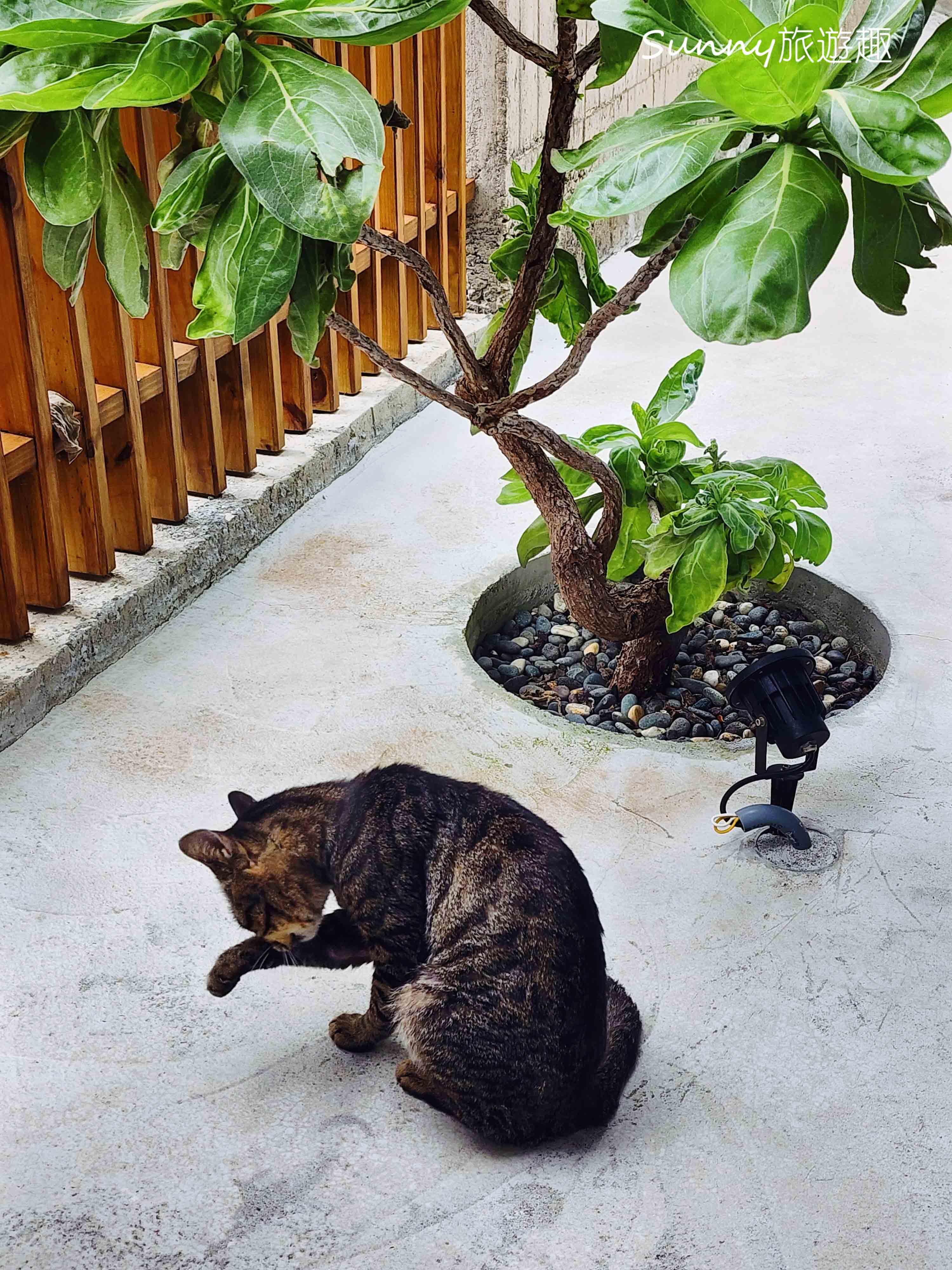 隨後我在庭院裡發現了一隻貓貓,不知道是否就是他留下腳印呢?😆
