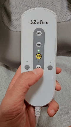 這個按摩器不是無線的,是有線的設計需要插插頭,控制方式是使用遙控器,震動、熱敷、氣囊,三個功能可以分別控制。氣囊的部分除了有三段氣壓可切換之外,還可以長按加、減按鍵,依照個人喜愛做使用。