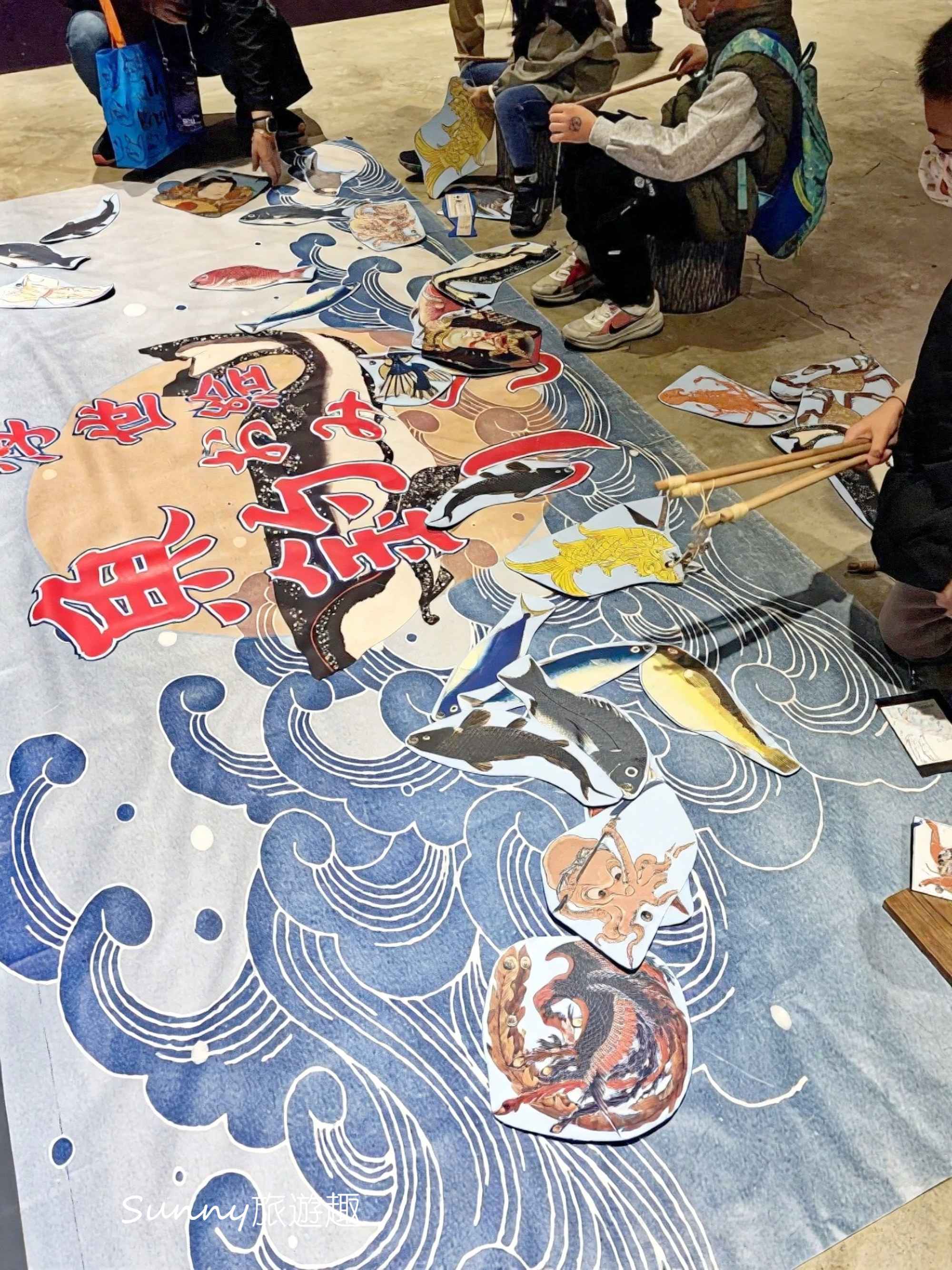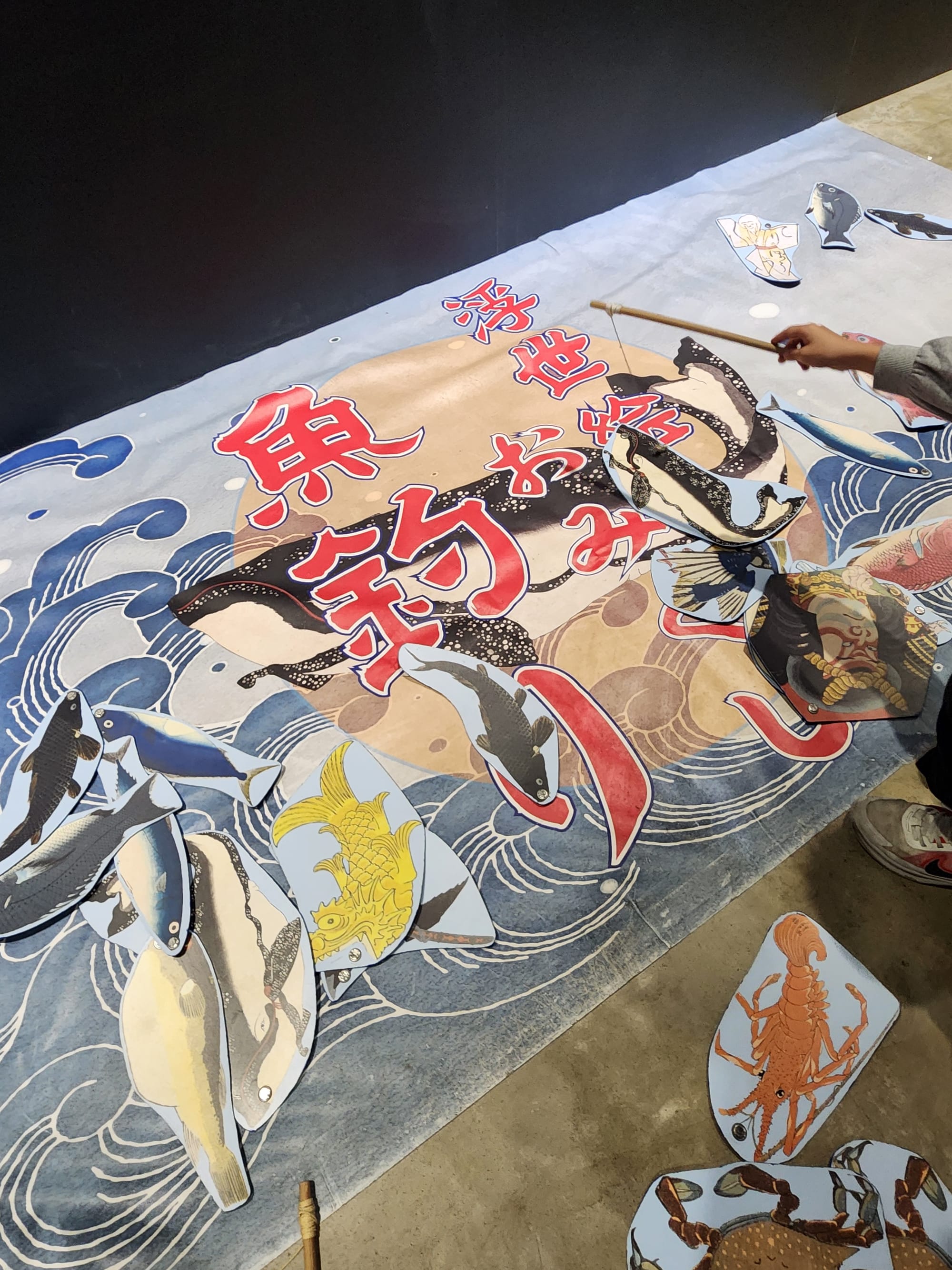 這一區走的是海洋主題,海洋生物被做成一張張占卜籤,可以用釣魚的方式來抽。比起只是站著看畫,這裡多了一個可以動手玩的環節,氣氛也變得輕鬆不少。