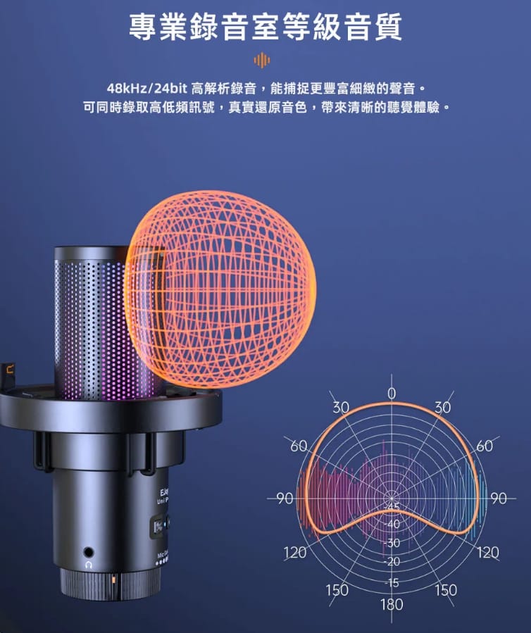 | 一般創作者等級麥克風(本款) | 48kHz / 24bit | 中階、實用型 | 聲音細節明顯提升,高低頻較自然,錄歌、配音、Podcast 都很夠用 |