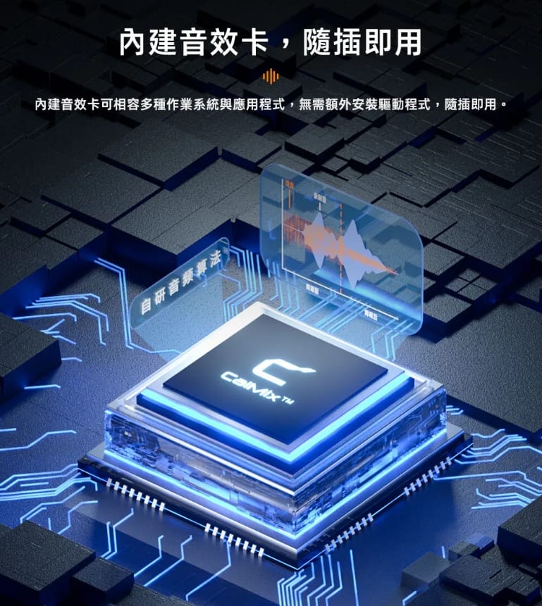 - 內建音效卡,隨插即用: